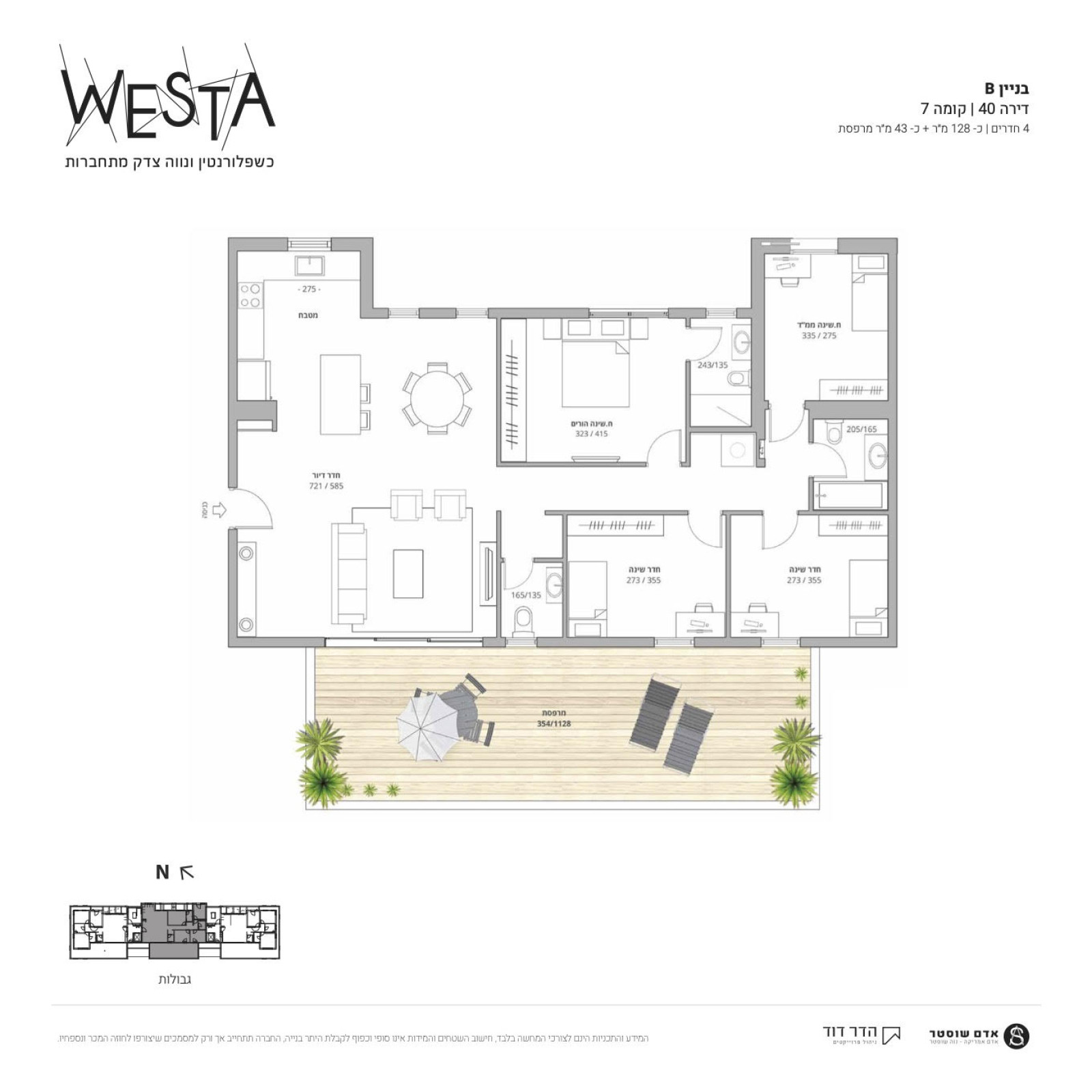 a terrasse of 56 m2 located at the foor 7 .+ 1 parking space.